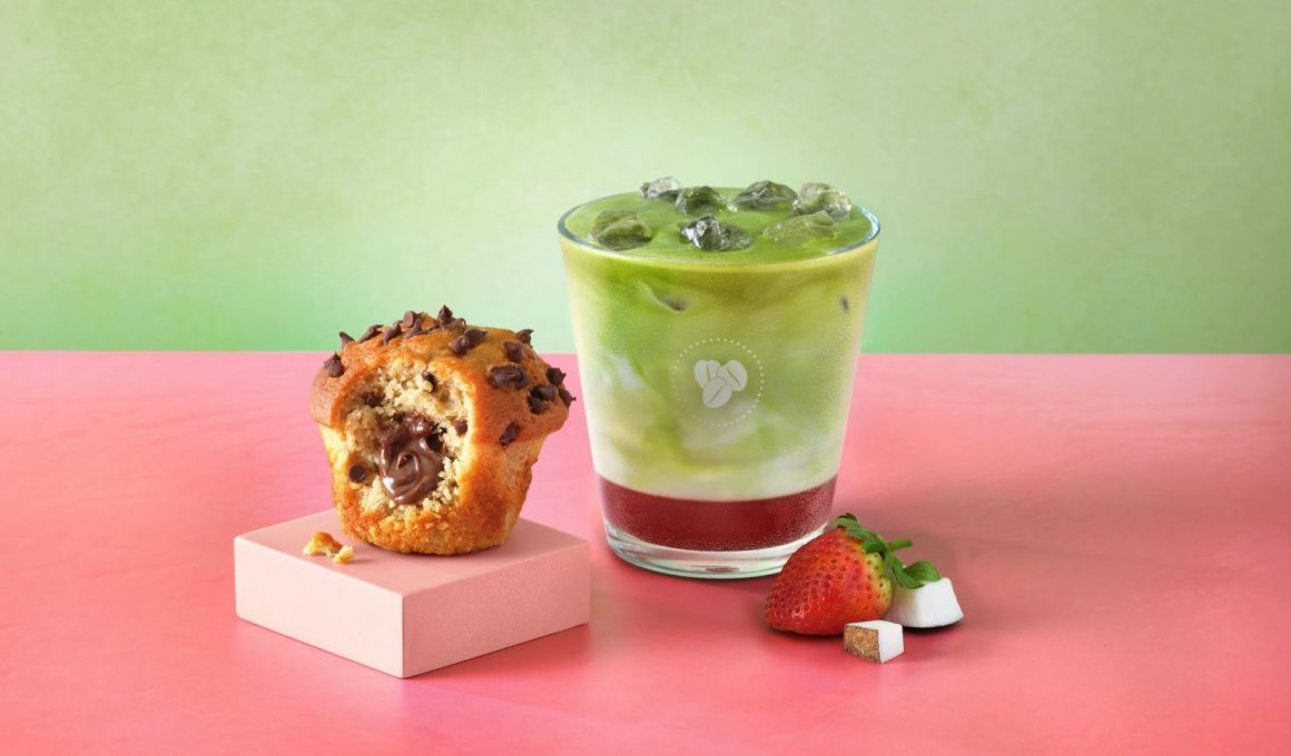 First up, we have the handcrafted matcha trio, of course, including a Hot Matcha Latte and an Iced Matcha Latte, both fully customisable with your choice of milk alternatives and syrups, or for a more refreshing twist, the Strawberry Coconut Iced Matcha Latte blends creamy coconut with sweet strawberry sauce for an uplifting sip.