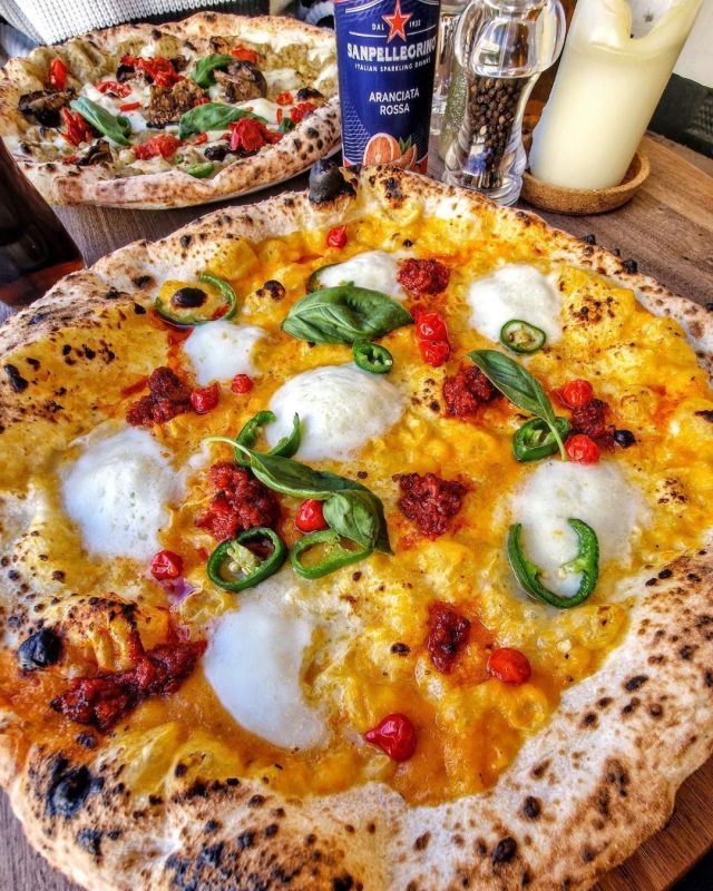 Think an orange pumpkin base to replace the usual tomato, topped with bufala mozzarella, ......
