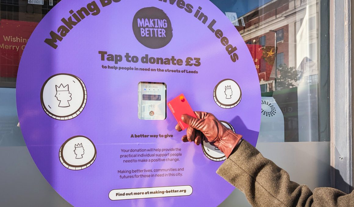 Money raised through the ‘tap-to-donate’ installations will go towards providing essential everyday items to those living on the streets of Leeds and any assistance they may need.