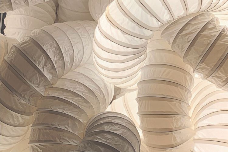 Susie MacMurray often makes work that deals with binaries: internal/external, darkness/light, body/self, certainty/doubt. Her process tries to find balance within conflicting elements. Beacon is a site specific artwork for Leeds’ oldest church, St John’s, with glowing, bodily coils entwined around its central pillars.