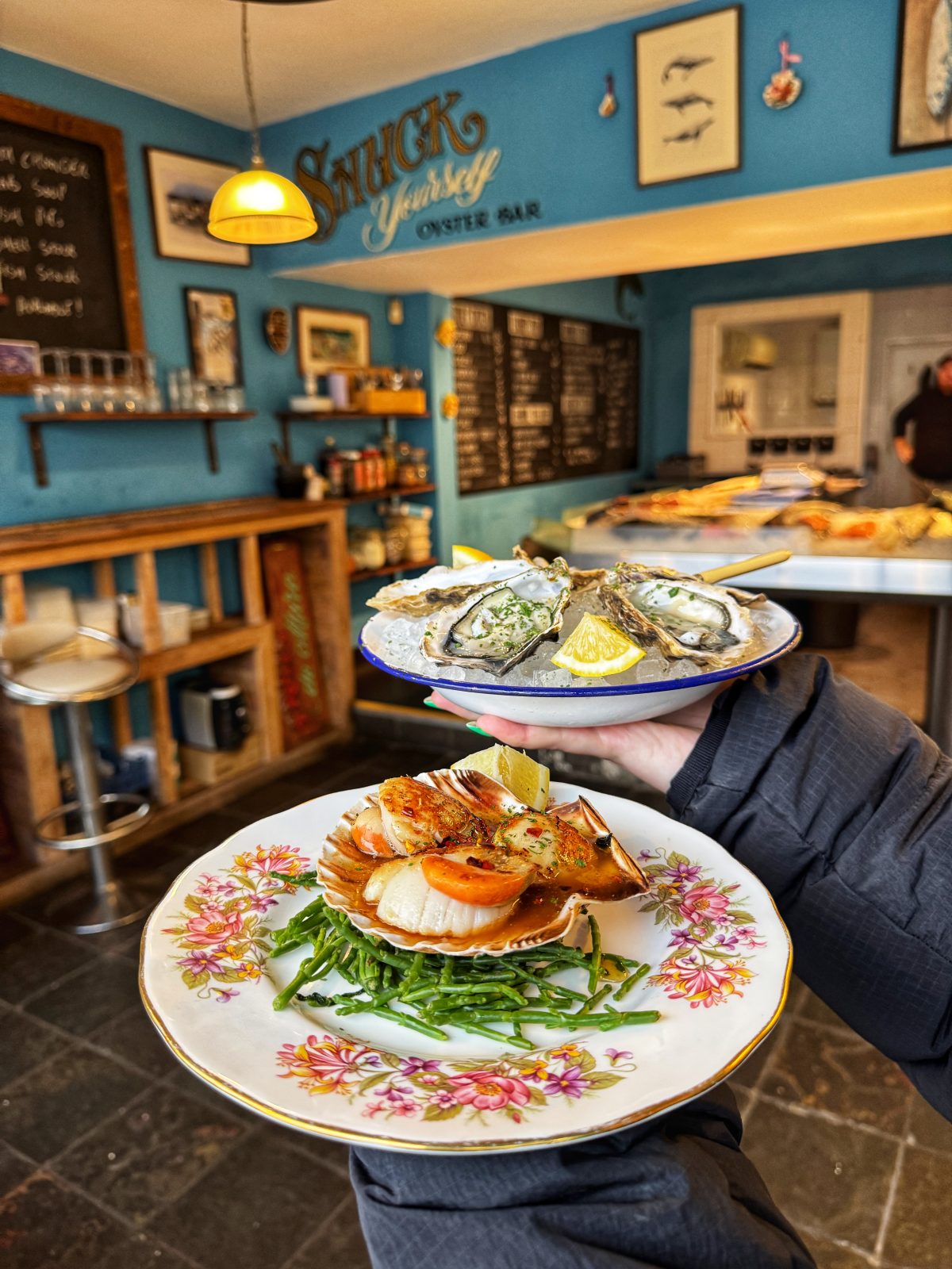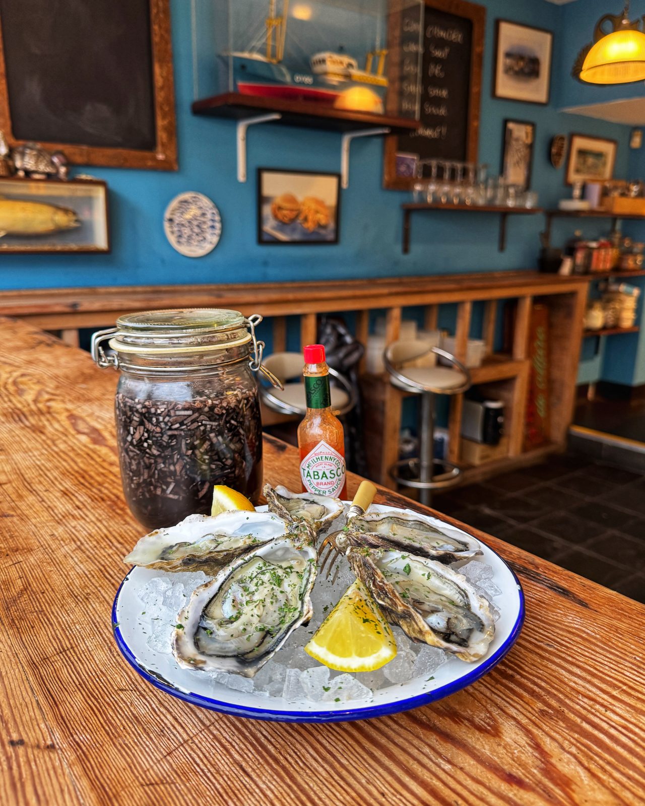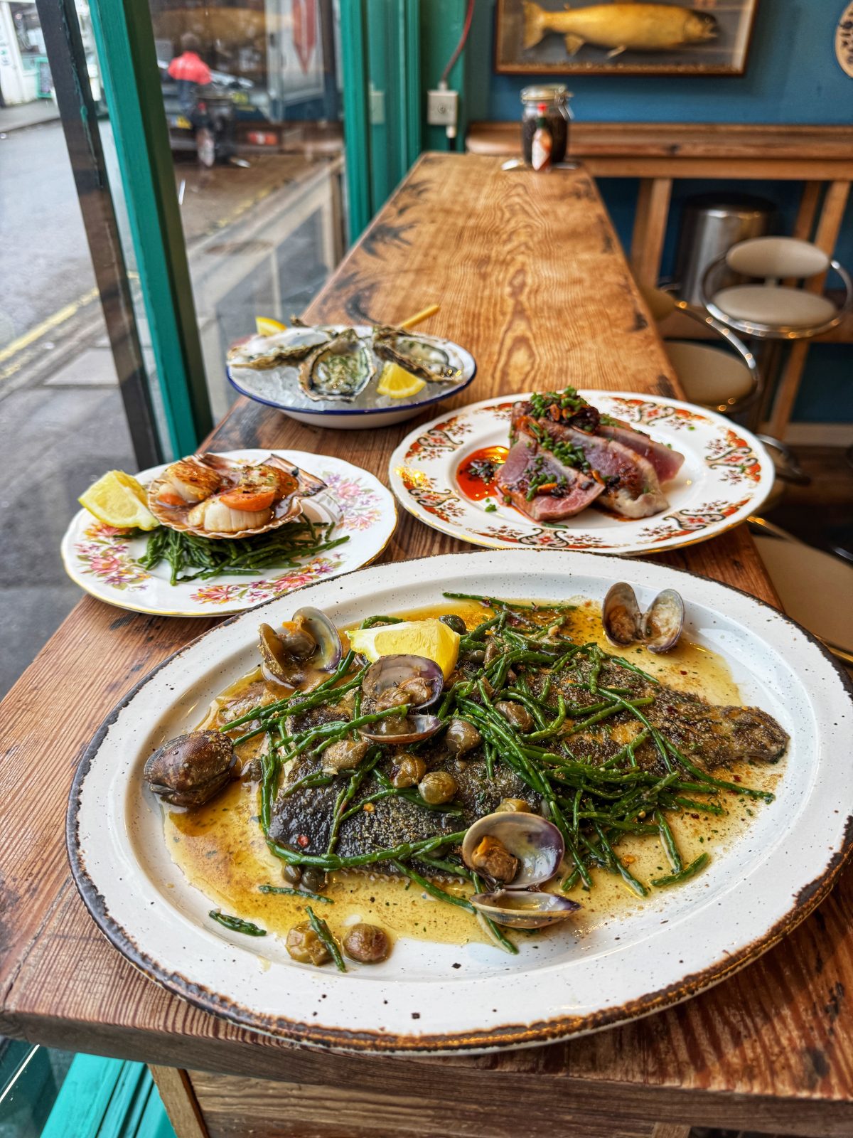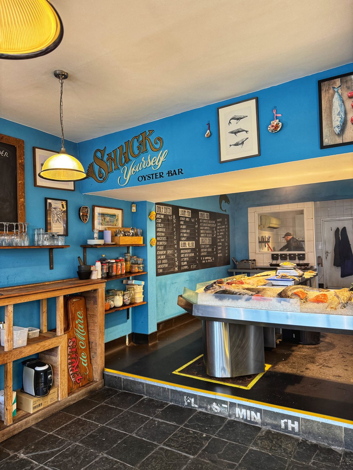 Of course it is just a fishmongers, so you don't have a working bar. But you are encouraged to support the nearby local businesses, like grabbing a bottle of white wine to go with your oysters from independent wine shop Staremoreboss which is literally next door.